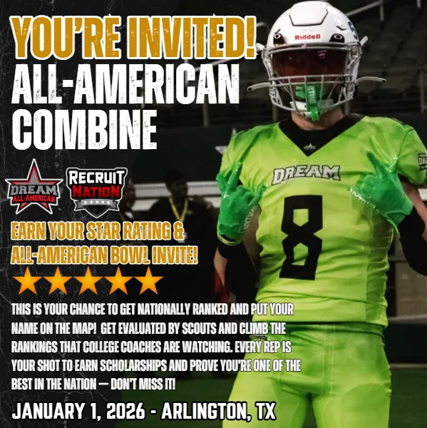 Since 2016, Recruit Nation College Prospect Showcase has been a national leader in identifying, developing, and showcasing middle school and high school football talent. Powered by Dream Sports Group, Recruit Nation has built a legacy of excellence through premier events like the Dream Football Classic, Dream 7v7, and the Dream All-American Bowl. Through our nationwide College Prospect Showcases, Regional Camps, National Tournaments, and Elite All-Star Games, more than 150,000 student-athletes have trained, competed, and gained exposure at Dream and Recruit Nation events.